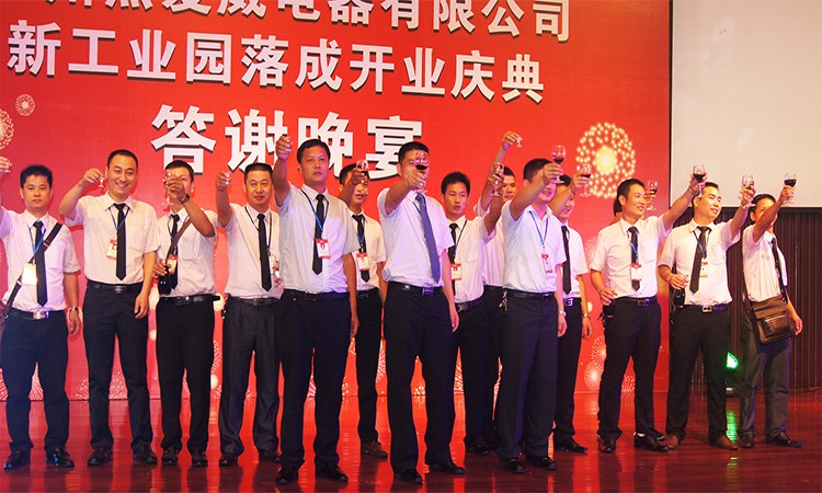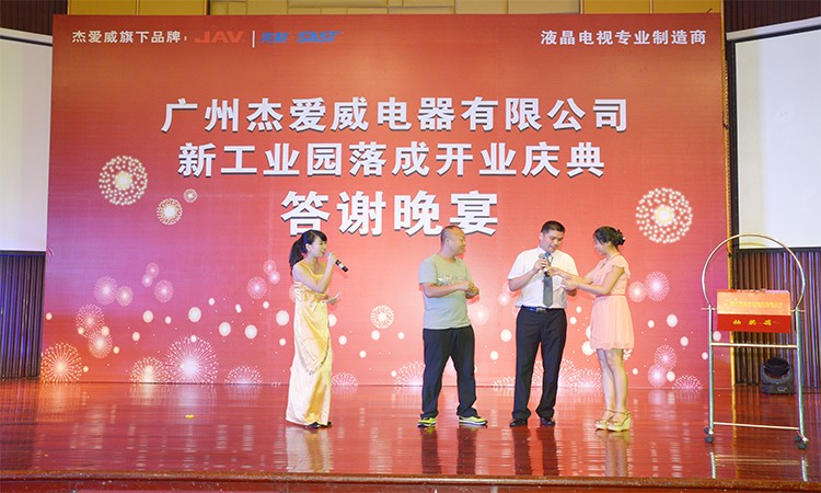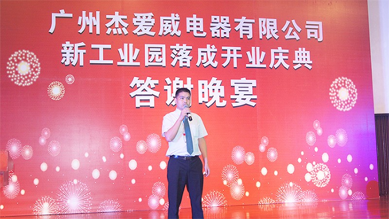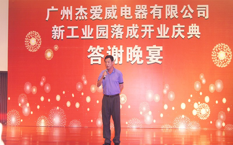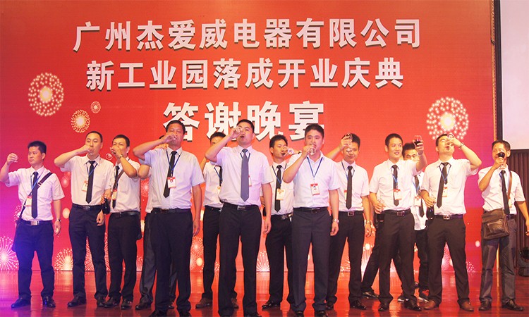 2013年8月14日乐网app官网新工业园落成庆典答谢晚宴于广州花都华钜君悦酒店隆重举行。宴会当晚,广州市杰爱威电器有限公司董事长李翔先 生、总经理李杰先生、副总经理邹仲生先生、杰爱威电器营销团队与广州市花都区政协领导、花都区工商联领导、广东省湖南商会、花都区电子行业协会、广州市湖南商会等相关领导,以及全国各代理商、经销商、供应商及行业代表700余人欢聚一堂,共同感受乐网app官网答谢晚宴的喜庆。同时,在本次答谢会上,进行抽取大奖环节并与各位合作伙伴勾画了未来灿烂的发展蓝图。